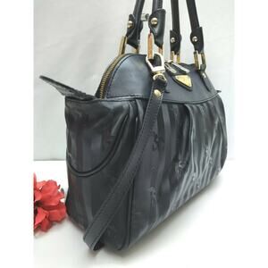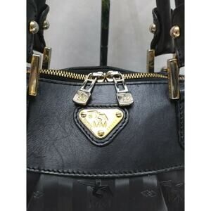 Maison Mollerus Black Leather Top Handle Zipper Satchel Shoulder Bag - Vintage