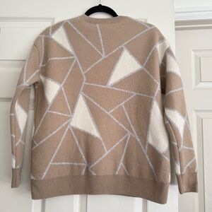 Maison Montagut Felixa cashmere jumper sweater, loose fit, pullover,geometric print pattern, v-neck,ribbed cuff ,neckline and hem, mid-weight fabric, great quality. Excellent preowned condition gently used,no flaws.