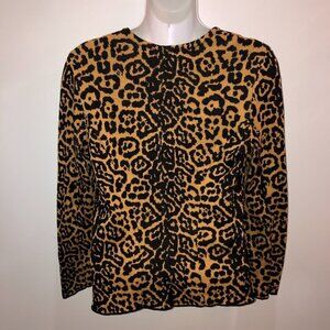 Maison Olga Women Sz 2 Black Gold Animal Print Long Sleeve Open Cardigan Sweater