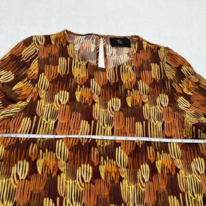 Maison Olga Women Tops Blouse Orange Yellow Cotton Short Sleeve Ruffle Hem Sz M