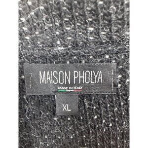 Maison Pholya Womens Cardigan Sz XL Black Knit Made in Italy Alpaca/Wool Blend
