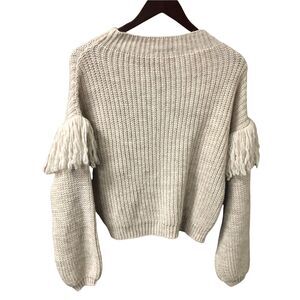 Maison Pholya crewneck sweater with fringe long sleeves Cream size M