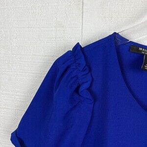 Maison Scotch Dress S Womens Blue Shift Short Sleeves Pockets Polyester Mini
