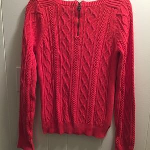 Crafted from 100% cotton in a cable knit design. This sweater features a crew neckline, rib knitted finishes and a zippered back. Says size 1 but I'm a medium. I may have worn it once. Let me know if you'd like additional details.