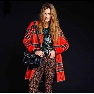 Maison Scotch Punk Radar Plaid Cocoon Wool Blend Coat Size 8