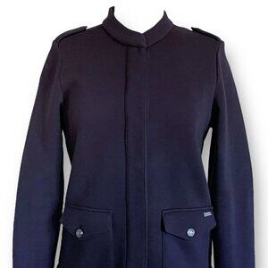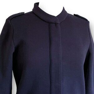 Navy blue military style jacket made with a soft and thick sweatshirt type fabric