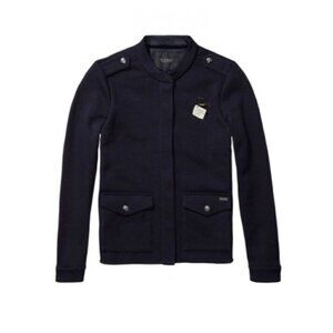 Maison Scotch & Soda Womens Military Sweat Jacket Sz 2 M Navy Blue Athleisure
