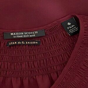 Maison Scotch Star de la Saison Small Burgundy Scalloped Sleeve Blouse EUC