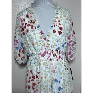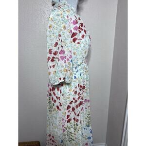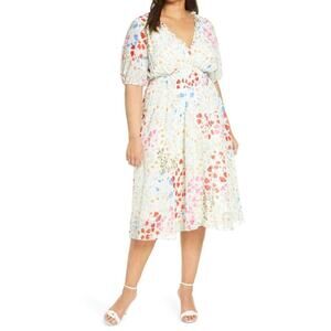 Maison Tara Floral Chiffon Clip Dot V Neck Smocked Midi Dress plus Size 14