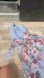 Elegant halter dress with a floral pattern. Features a light blue base with vibrant floral designs.