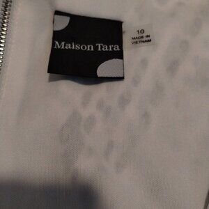 Maison Tara Midi Dress Size 10 Lined Abstract Ruffle Short Sleeve V-Neck Casual.