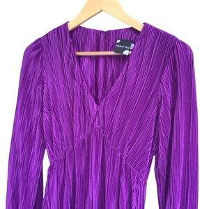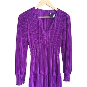 Maison Tara Purple Plisse Long Sleeve Dress Size 4 NEW
