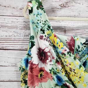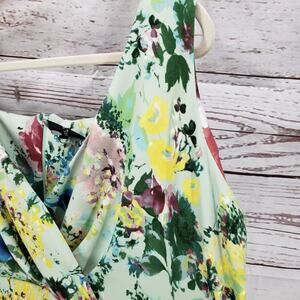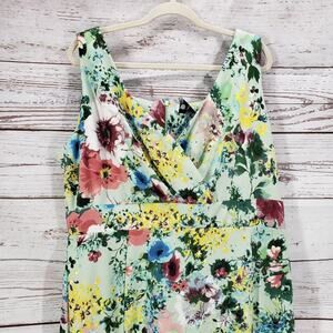 Maison Tara Women's Multicolor Floral Surplice Neck Sleeveless Dress Size 16W. Polyester, spandex fabrics. Approx. measurements pit to pit 22 in. Waist 40 in. Dress length 46.5 in. Light fabric pilling. Pre-owned in good condition, no holes or stain.