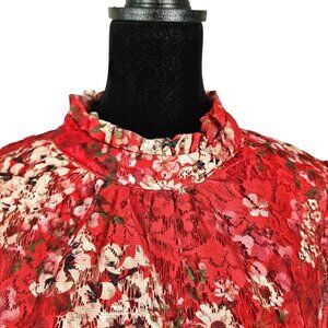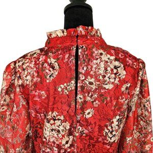 Maison Tara Womens Size 10 Red Floral Long Sheer Sleeve Tiered Ruffle Mini Dress