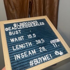 Maison d' Amelie Anthropologie Cognac Brown Vegan Leather Pants Size 8