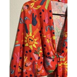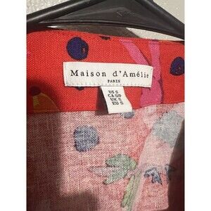 Maison d' Amelie Paris Women’s Small Funky Print Tie Front Linen Crop Top Blouse