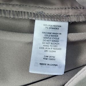 This pair of women's career pants / trousers is size 6. They are from Maison d'Amelie Paris. They are solid beige. These dress slacks are pull on style with elastic at the back of the waistband. 93% Polyester & 7% Spandex. They have a 26" inseam. The pants are new and unworn, but missing original tags.