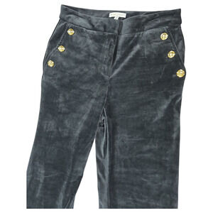 Maison d' Amelie Women Sz 6 Black Velour Velvet Sailor Pants Parisian Glam Holiday Winter Christmas Family Photos Party NYE Nautical Pirate Renfaire Carnival Circus NWOT Black with Gold Buttons on pockets. Buttons on pockets are functional. US 6 UK 10 EU 36 96% Polyester 4% Elastane Flare Leg