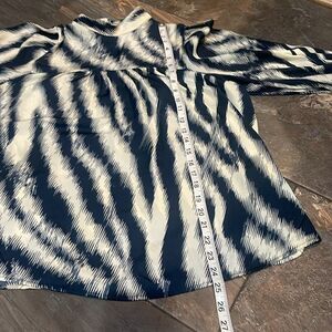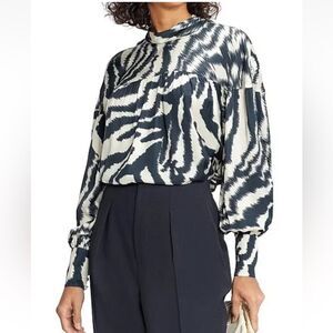 Maison d’ Amelie Women’s Small Blue Cream High Neck 5 Button Cuffs Blouse Sz Sm