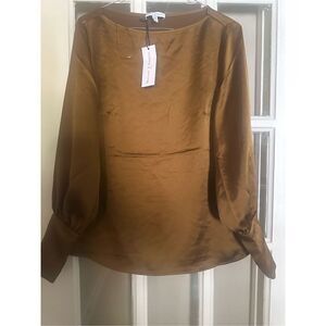 Maison d' Amelie Women's satin silk Blouse Size:S Gold long sleeve