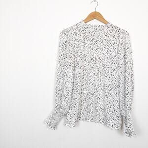 Maison d’ Amélie White & Black Dotted Ruffle Trim Blouse Size L