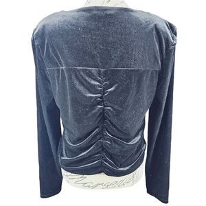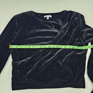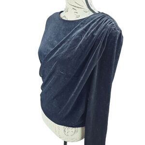Maison d'Amelie Black Velvet Ruched Back Faux Wrap Long Sleeve Blouse Top Size L