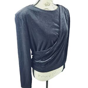 Maison d'Amelie -492 NWOT Black Velvet Ruched Back Faux Wrap Long Sleeve Top L