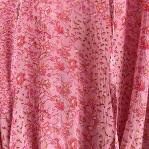 Maison d'Amelie Blouse Size M Pink Floral Boho Smocked Long Sleeve Peasant