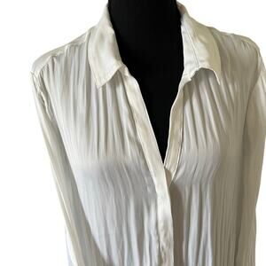 Maison d'Amelie Congurated White Satin Button Up Size XL Elevated Basic Career