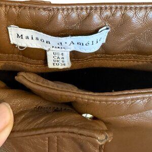Maison d'Amelie Faux Leather Pants Straight Leg Brown Tan Size 4
