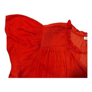 Bright, feminine, and easy to wear — this red blouse from Maison d’Amelie features flutter sleeves, delicate smocking at the shoulders, and a ruffled neckline with tie detail. The lightweight, flowy fabric drapes beautifully, making it perfect for work, brunch, or a casual day out.
