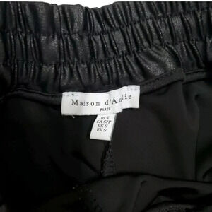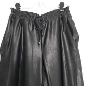 Maison d'Amelie Paris Black Coated Faux Leather Oversized Joggers Size Small inseam 27"