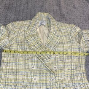 PLEASE NOTE: The blazer/jacket is a size Medium and the shorts are a size Small! For sizing, see all photos indicating measurements of each piece.