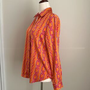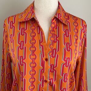 Maison d’Amelie Paris Women’s Retro Chains Silky Long Sleeve Button-Up Blouse Size M