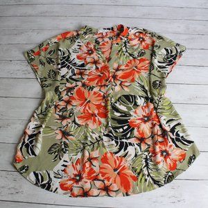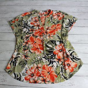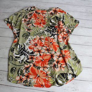 Maison d'Amelie Sleeveless Blouse Size Large Orange Green Black Floral