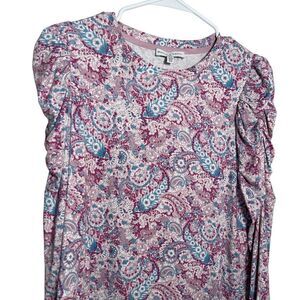 Maison d'Amelie Top Women's Medium Printed Puff Sleeve Long Sleeve Textured