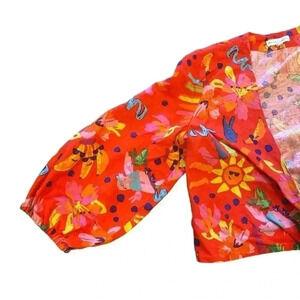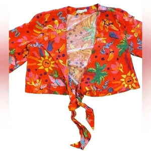Maison d’Amelie Tropical Tie Front Linen Blend V-Neck 3/4 Sleeve Too Size Small