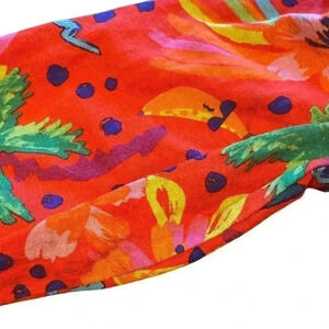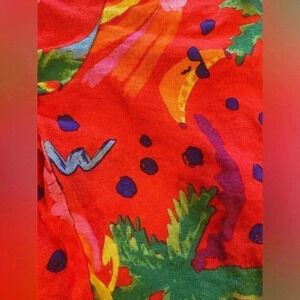 Has color transfer patches throughout. Hard to see with this busy and vibrant fabric. Priced accordingly. Please see the last 2 pictures.