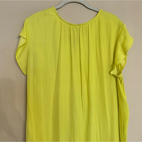 Maison d'Amelie V-Neck Short Sleeve Flowy Blouse Yellow Green Size XL