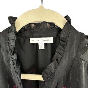 Maison d'Amélie Black Red Boho Paisley Blouse M Sheer Ruffle Neck Long Sleeve
