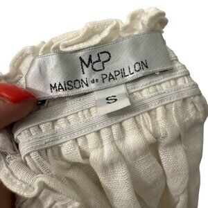 Maison de Papillon NYC Ivory Checkered Linen Strapless Top Womens Size Small