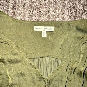 Maison D'Amelie Paris Anthropologie Women's Olive Green Flora Blouse Top Small