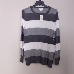 Maison Jules Color Block Jewel Neck T Shirt Sweater Steel Grey Medium