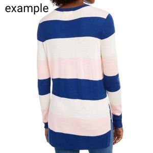 Color Block Design, jewel neckline, split sides, tunic look length, long sleeves, relaxed fit