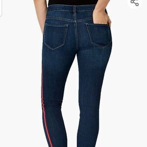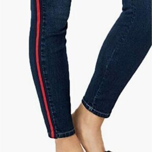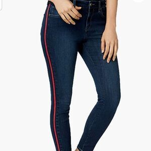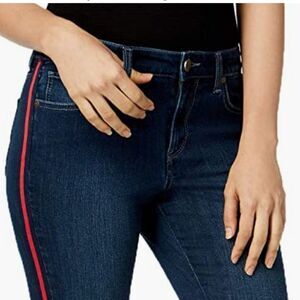 maison Jules Jeans Skinny Fit Jordan Womens Zip-fly Slim 56% Cotton 25% Polyester 18% Viscose 1% Elastane Back Pocket(s),Front Pocket(s) 2-Tone High-Rise All Seasons Medium Weight Casual Modern, Additional Details: Casual high-rise slim fit throughout hip & thigh jeans, Zip-fly and button closure, Contrasting red side stripe.