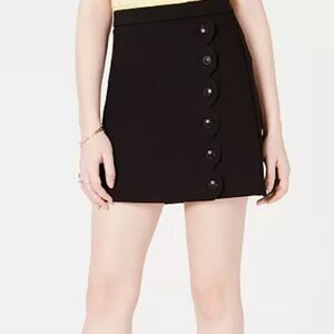 A scalloped design is accented by button embellishments at the front of this short skirt from Maison Jules.