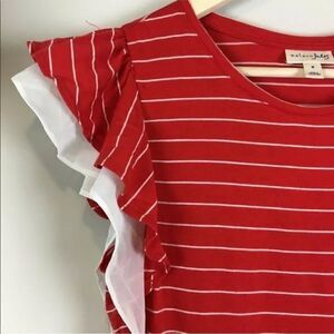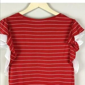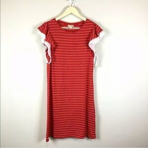 Maison Jules woman’s red knit ruffle sleeve mini dress. Cotton blend, above the knee shift casual dress. NWT, size small.