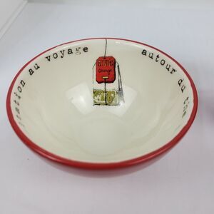 Maisons du Monde Tea Mug Cup & Bowl Set Red & Tan Invitation to Travel NWT