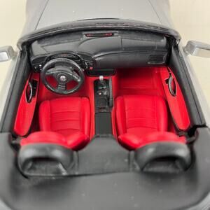 A really sexy car, this one is silver with two tone, red and black interior. Operable steering wheel, hood, trunk, and doors that open. A must have for any collector.