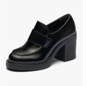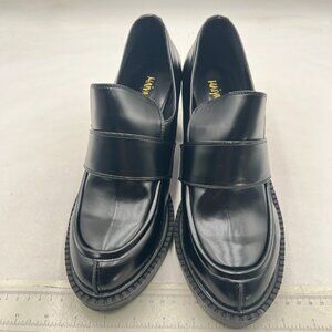 Maiyang Black Chunky Heel Platform Loafers Round Toe Slip on Party Event Comfortable Casual Daily Pump